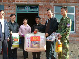 2006年12月25日,集團(tuán)匯源珠寶有限公司干部職工與團(tuán)市委領(lǐng)導(dǎo)來到東源縣燈塔鎮(zhèn)梨園村和紫金縣附城鎮(zhèn)上莊村,慰問這兩個(gè)村的全倒戶,給這里的22戶全倒戶每戶送上500至1000元的慰問金、床上用品及生活用品等慰問品,為我市災(zāi)區(qū)的全倒戶送上自己最美好的祝愿!