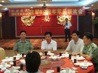 8月1日,匯源集團(tuán)與源城區(qū)武裝部全體官兵在濱江金利大酒店舉行建軍八十周年聯(lián)歡晚會,市委常委、軍分區(qū)政委趙國禎和匯源集團(tuán)董事長賴運(yùn)宏、副董事長劉越香出席了晚會。聯(lián)歡會上,賴運(yùn)宏董事長代表匯源集團(tuán)向源城區(qū)武裝部贈送了《軍民共建》牌匾。
