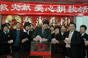 為積極響應(yīng)市委、市政府號(hào)召,發(fā)揚(yáng)匯源集團(tuán)“充滿愛心、勇?lián)?zé)任”優(yōu)良傳統(tǒng), 2008年2月4日上午,在賴運(yùn)宏董事長(zhǎng)的關(guān)心下,匯源集團(tuán)向全體員工發(fā)出了《抗雪救災(zāi)送溫暖獻(xiàn)愛心倡議書》。全體匯源員工熱情高漲,展開了以“踴躍捐款、愛心大融冰”為主題的抗雪救災(zāi)、送溫暖獻(xiàn)愛心捐款活動(dòng)。到11時(shí)30分,共捐得善款15221元,并于上午及時(shí)送到了市慈善總會(huì)。充分體現(xiàn)了匯源員工“關(guān)愛社會(huì),奉獻(xiàn)愛心”的企業(yè)文化,為仍滯留在車站或旅途中的受困群眾以及受災(zāi)的群眾獻(xiàn)上了一份關(guān)愛與真情。