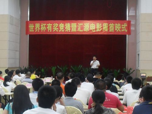 為慶祝2010年世界杯足球賽,活躍員工業(yè)余文化生活,匯源集團(tuán)6月23日晚上7點(diǎn)-10點(diǎn),在多功能廳舉行了“世界杯足球賽有獎(jiǎng)競猜暨匯源電影周首映式”活動(dòng),公司客戶、員工及員工家屬150多人參加了這次活動(dòng),公司董事長賴運(yùn)宏、副董事長劉越香及全體副總經(jīng)理,與大家一起觀看了電影,并參與了本次世界杯冠軍隊(duì)競猜活動(dòng)。